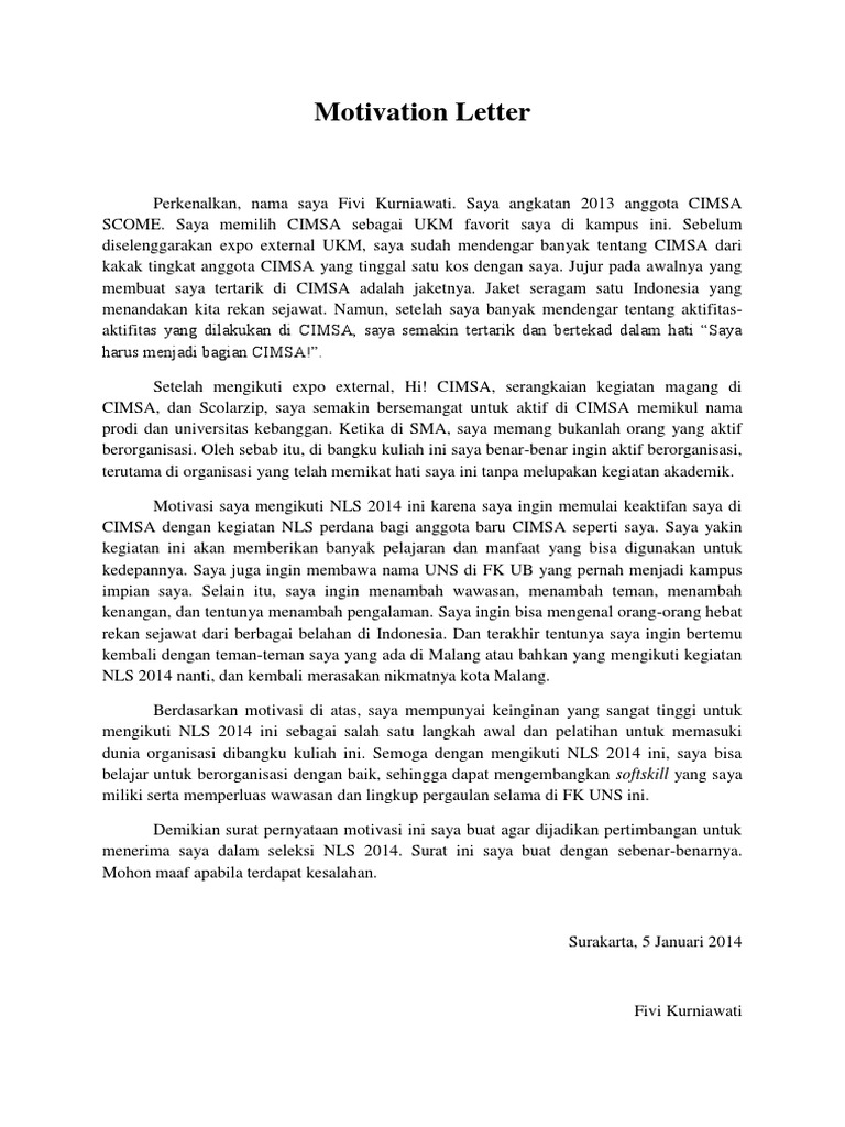 Contoh Motivation Letter : Cara Membuat Motivation Letter | sosiologis.com : Motivation letter dear sir or madam, my name is faikha' fairuz firdausi and i am currently studying bachelor of international relations at muhammadiyah university malang.. Contoh motivation letter ikut lkmm dasar. Sebelum menunjukkan contoh motivation letter yang tepat untuk anda, ada beberapa tips dalam membuat motivation letter agar anda dilirik untuk memperoleh beasiswa pendidikan ke luar negeri. 9 contoh application letter yang bikin kamu gampang dapat kerja. Berikut adalah contoh motivation letter bahasa indonesia untuk mendaftar volunteer. Admission dialogue between nurse and patient nurul.